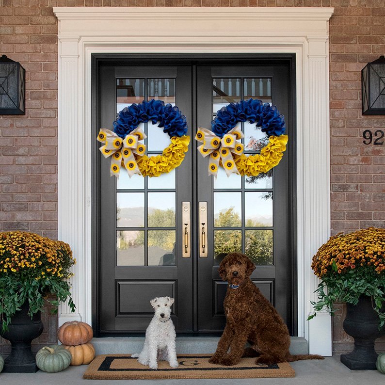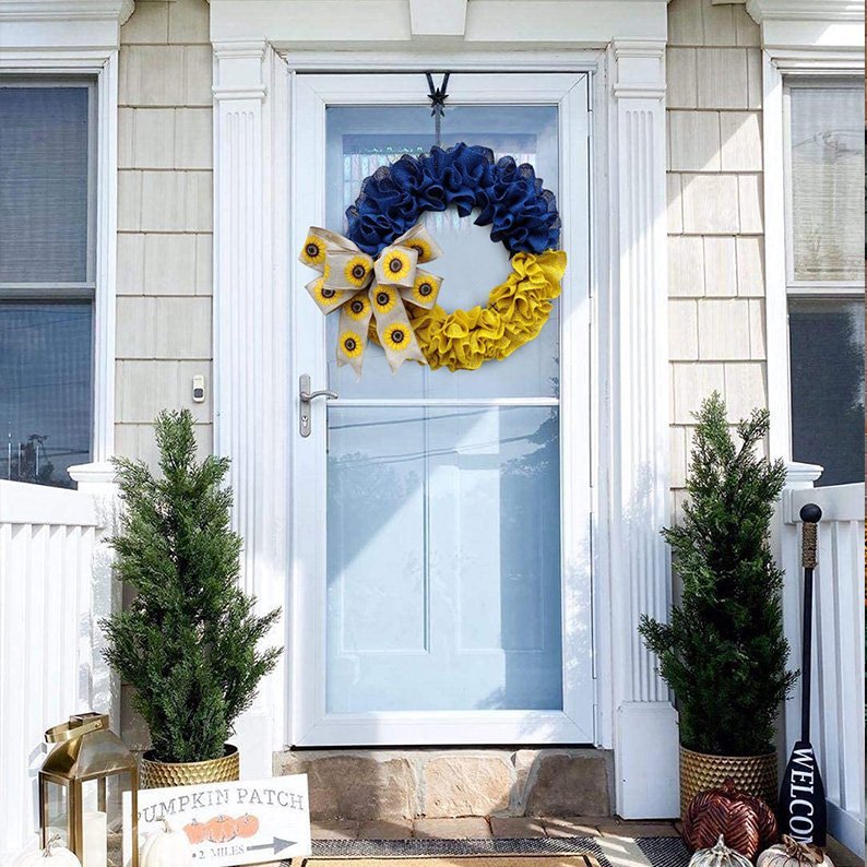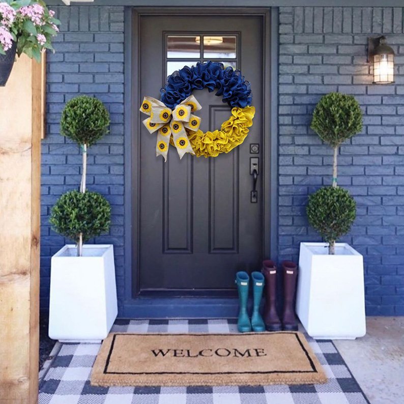 🌞This blue and yellow round flower wreath done in the colors of the the invaded country can be hung on your front door to show your solidarity with the invaded country.✊